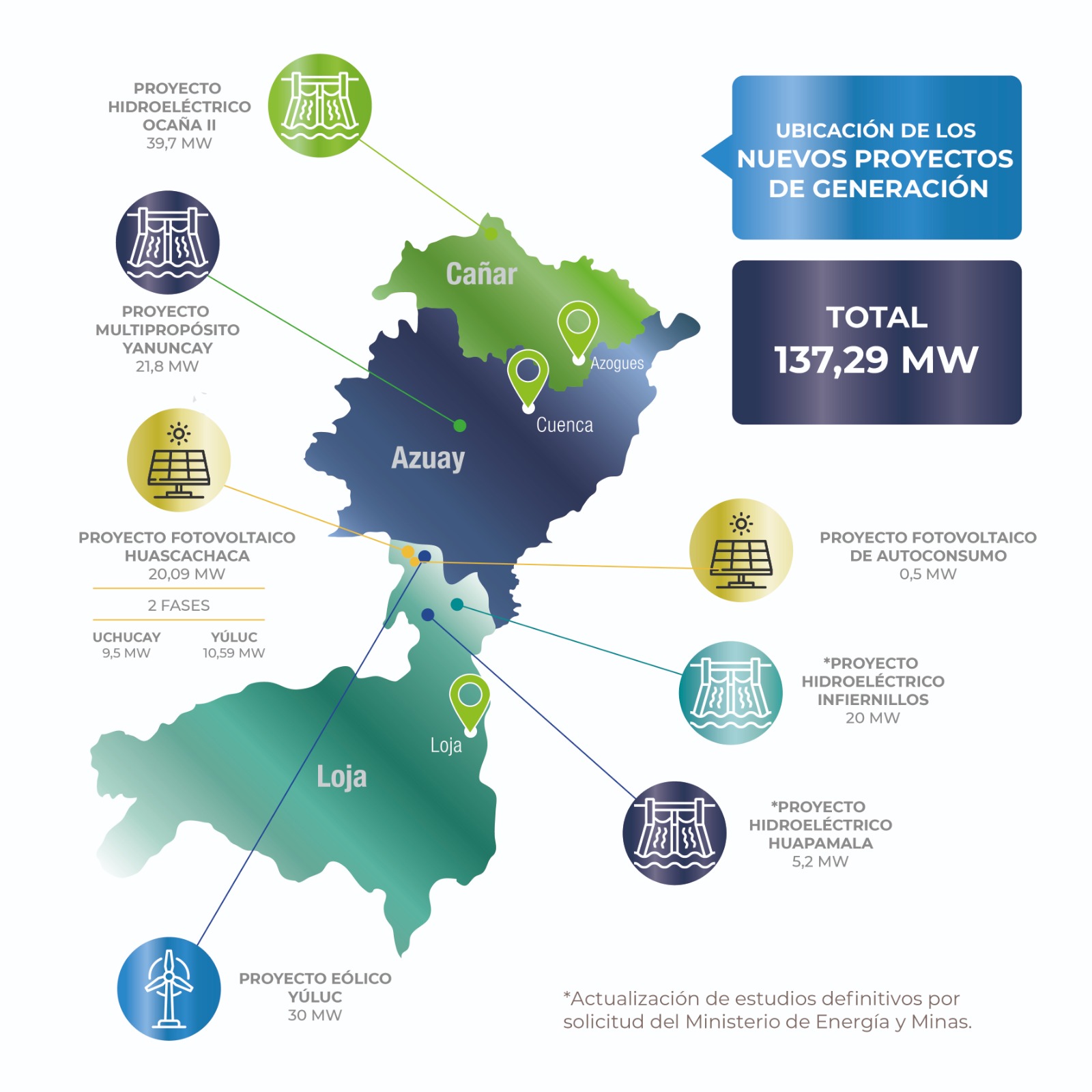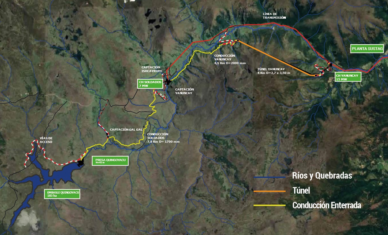 El Proyecto, a más de la generación de energía eléctrica renovable (22 MW) garantizará en épocas de estiaje el abastecimiento de caudal regulado para la planta de agua potable de Sustag y los sistemas de riego; mantendrá el caudal ecológico en los ríos preservando la calidad de la vida acuática; y, durante el invierno, reducirá el nivel de crecidas del río.
